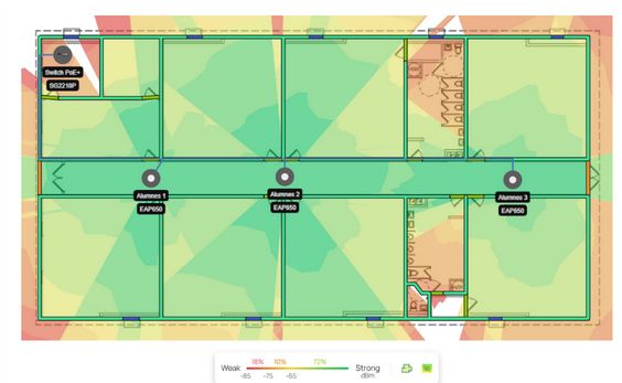 Con el software de mapas de calor, se puede visualizar la cobertura Wi-Fi y optimizar la ubicación de los puntos de acceso.